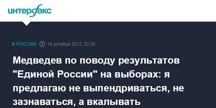 Медведев по поводу результатов "Единой России" на выборах: я предлагаю не выпендриваться, не зазнаваться, а вкалывать
