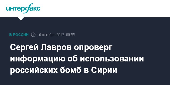 Люксембург. 15 октября. INTERFAX.RU - Россия не подтверждает распространяемую правозащитными организациями информацию о том, что в Сирии якобы используются российские кассетные бомбы, заявил в понедельник журналистам глава МИД РФ Сергей Лавров.