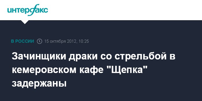 Кемерово. 15 октября. INTERFAX.RU - Все зачинщики конфликта в кафе "Щепка" в Кировском районе Кемерово, переросшего в драку с применением травматического оружия, установлены и задержаны, сообщает пресс-служба ГУ МВД по Кемеровской области. C задержанными работают сотрудники полиции, вошедшие в состав специализированной следственно-оперативной группы, созданной по приказу областного главка МВД.