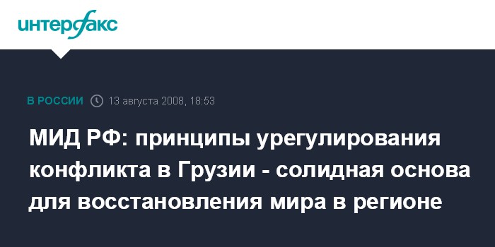 МИД РФ: принципы урегулирования конфликта в Грузии - солидная основа для восстановления мира в регионе