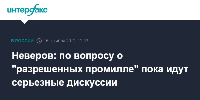 Москва. 15 октября. INTERFAX.RU - Вопрос о возможном возвращении в законодательство разрешенных промилле пока остается предметом дискуссий, заявил на пресс-конференции в центральном офисе "Интерфакса" секретарь генсовета "Единой России", вице-спикер Госдумы Сергей Неверов.