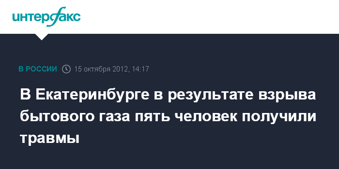 Екатеринбург. 15 октября. INTERFAX.RU - В Екатеринбурге взорвался бытовой газ в девятиэтажном доме, пострадали пять человек, сообщил "Интерфаксу" источник в силовых структурах города.