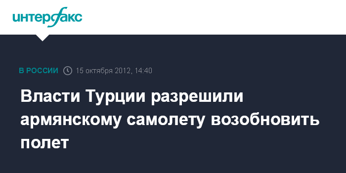 Стамбул. 15 октября. INTERFAX.RU - Турецкие власти объявили в понедельник, что разрешили армянскому самолету, совершившему посадку в городе Эрзуруме, возобновить полет.