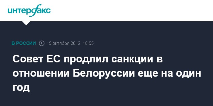 Минск. 15 октября. INTERFAX.RU - Совет Европейского Союза на заседании в понедельник в Люксембурге принял решение продлить санкции в отношении Белоруссии до 31 октября 2013 года.
