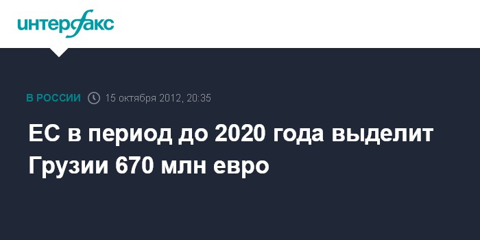 Тбилиси. 15 октября. INTERFAX.RU - Глава представительства Евросоюза в Грузии Филипп Димитров заявил о намерении Евросоюза оказать стране в период до 2020 года финансовую помощь в размере 670 млн евро. Часть этой суммы будет предназначена для государственного бюджета, а другая часть - для осуществления в стране ряда новых проектов, в том числе в сфере сельского хозяйства