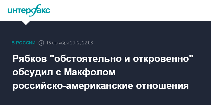 Рябков "обстоятельно и откровенно" обсудил с Макфолом российско-американские отношения
