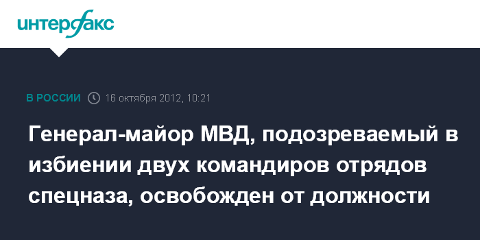 Генерал-майор МВД, подозреваемый в избиении двух командиров отрядов спецназа, освобожден от должности