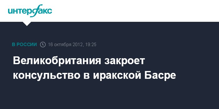 Лондон. 16 октября. INTERFAX.RU - Власти Великобритании закроют консульство в городе Басра на юго-востоке Ирака в рамках программы сокращения расходов, сообщил во вторник глава британского МИД Уильям Хейг.