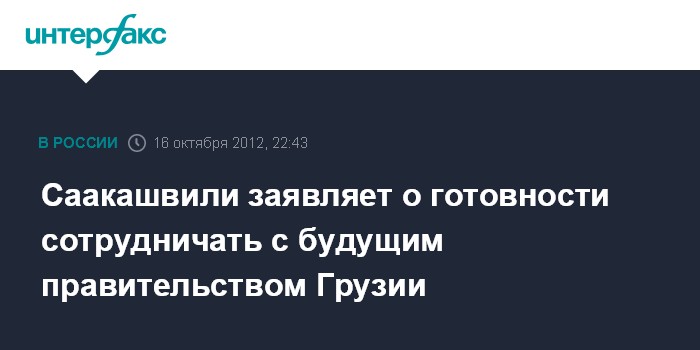 Тбилиси. 16 октября. INTERFAX.RU - Президент Грузии Михаил Саакашвили заявил, что он и возглавляемая им партия "Единое национальное движение" (ЕНД) будут сотрудничать с будущим правительством, полный состав которого представил во вторник общественности лидер победившей на выборах в стране политической коалиции "Грузинская мечта" Бидзина Иванишвили.