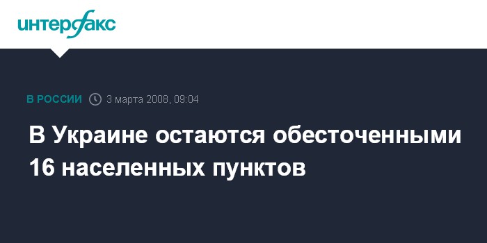 Киев. 3 марта. INTERFAX.RU - В Украине по состоянию на утро понедельника 16 населенных пунктов остаются обесточенными непогодой. Об этом сообщила пресс-служба МинЧС Украины.