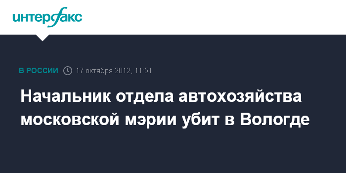 Начальник отдела автохозяйства московской мэрии убит в Вологде