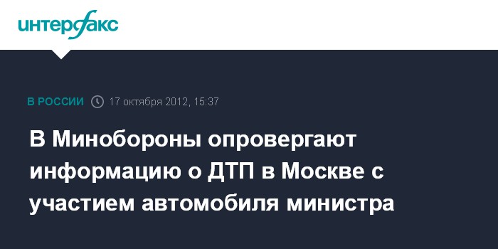 В Минобороны опровергают информацию о ДТП в Москве с участием автомобиля министра
