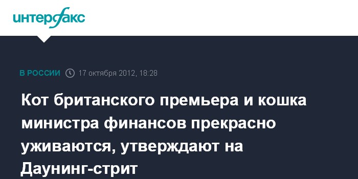 Лондон. 17 октября. INTERFAX.RU - Официальная резиденция премьер-министра Великобритании на Даунинг-стрит опровергла слухи о том, что между котом главы правительства и кошкой министра финансов возникла вражда.