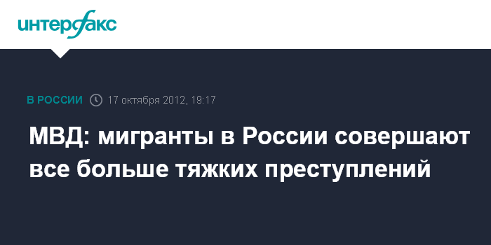 Москва.17 октября. INTERFAX.RU - Растет количество тяжких и особо тяжких преступлений, совершенных в России мигрантами, сообщают в МВД РФ.