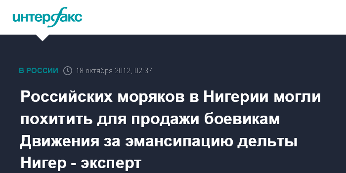Российских моряков в Нигерии могли похитить для продажи боевикам Движения за эмансипацию дельты Нигер - эксперт