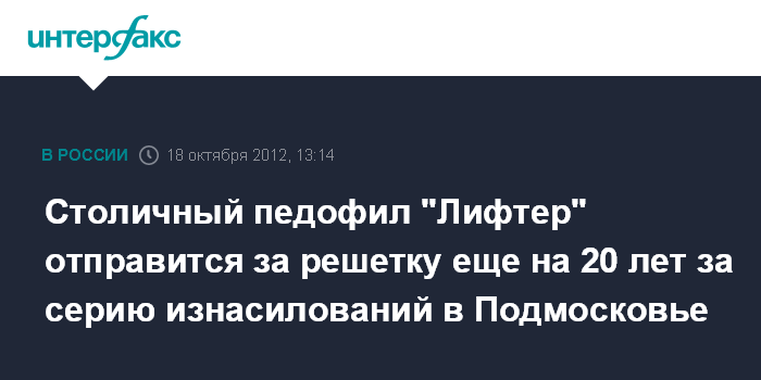 Столичный педофил "Лифтер" отправится за решетку еще на 20 лет за серию изнасилований в Подмосковье