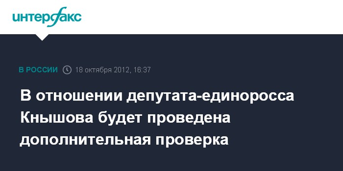 В отношении депутата-единоросса Кнышова будет проведена дополнительная проверка