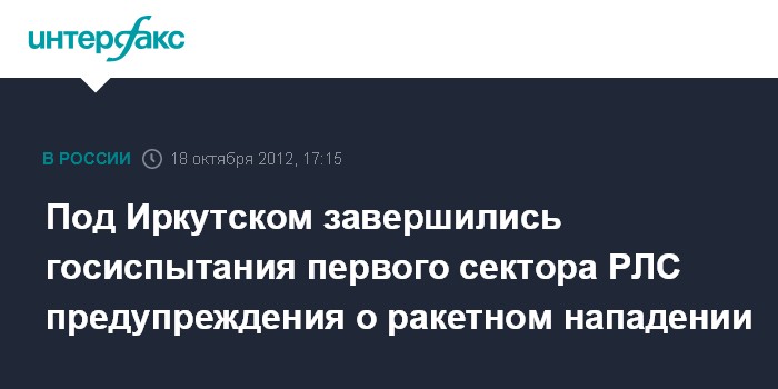 Москва. 18 октября. INTERFAX.RU - В Иркутской области успешно завершены государственные испытания первого сектора радиолокационной станции высокой заводской готовности "Воронеж-М", сообщает управление внешних коммуникаций ОАО "РТИ".
