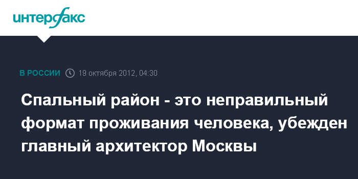 Спальный район - это неправильный формат проживания человека, убежден главный архитектор Москвы