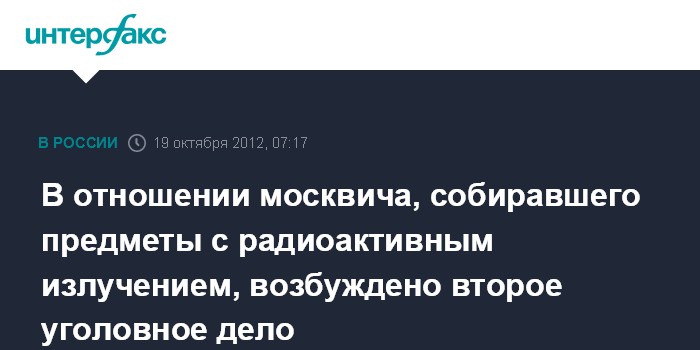 Москва. 19 октября. ИНТЕРФАКС - Второе уголовное дело возбуждено в отношении москвича, незаконно собиравшего предметы с радиоактивным излучением, сообщил "Интерфаксу" источник в правоохранительных органах.