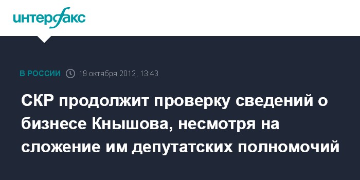 СКР продолжит проверку сведений о бизнесе Кнышова, несмотря на сложение им депутатских полномочий