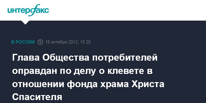 Глава Общества потребителей оправдан по делу о клевете в отношении фонда храма Христа Спасителя