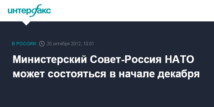 Брюссель. 20 октября. INTERFAX.RU - Заседание Совета Россия-НАТО (СРН) на уровне министров иностранных дел может быть приурочено к встрече глав МИД стран Североатлантического альянса в Брюсселе, которая пройдет 4-5 декабря в штаб-квартире организации, сообщил в субботу "Интерфаксу" европейский дипломатический источник.