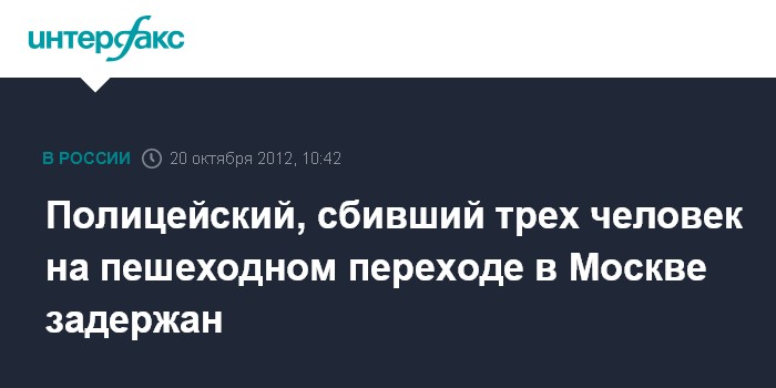 Москва. 20 октября. INTERFAX.RU - В отношении полицейского, находившегося за рулем автомобиля, сбившего трех человек на пешеходном переходе в Москве, заведено уголовное дело, он задержан.