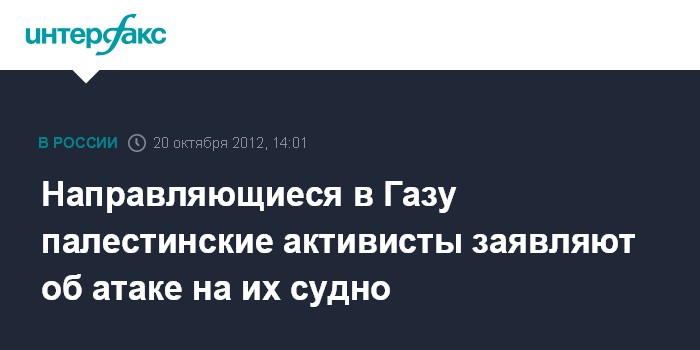 Стокгольм. 20 октября. INTERFAX.RU - Судно с палестинскими активистами, которые пытаются нарушить морскую блокаду Израилем сектора Газа, подверглось атаке, сообщила в субботу агентству АФП представитель шведской компании-владельца судна Виктория Странд. "Судно "Эстель" (судно с активистами - ИФ) подверглось атаке. Я только что получила от них телефонное сообщение", - заявила она.