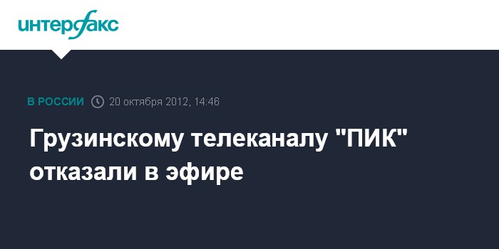 Тбилиси. 20 октября. INTERFAX.RU - Русскоязычный телеканал "ПИК" в субботу приостановил вещание в Грузии. Как сообщила журналистам руководитель информационной службы "ПИК" Екатерина Котрикадзе, приостановка вещания связана с разрывом "Общественным вещателем Грузии" контракта с "ПИК".