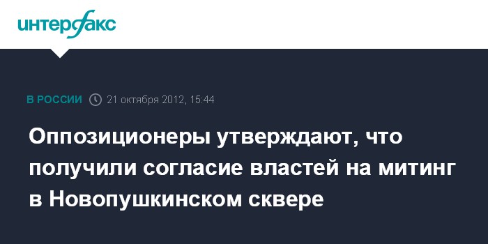 Оппозиционеры утверждают, что получили согласие властей на митинг в Новопушкинском сквере