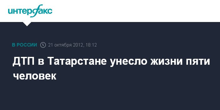 Москва. 21 октября. INTERFAX.RU - Пять человек погибли в ДТП в Татарстане, сообщили "Интерфаксу" в пресс-центре МВД России.