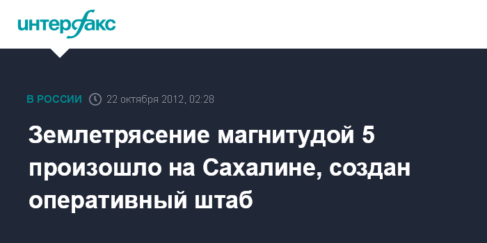 Землетрясение магнитудой 5 произошло на Сахалине, создан оперативный штаб