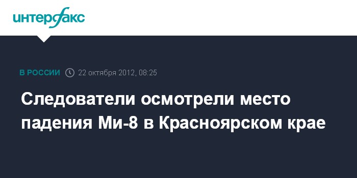 Новосибирск. 22 октября. INTERFAX.RU - Следственная группа завершает осмотр места крушения вертолета Ми-8 в Красноярском крае, в результате которого один человек погиб, еще десять пострадали.