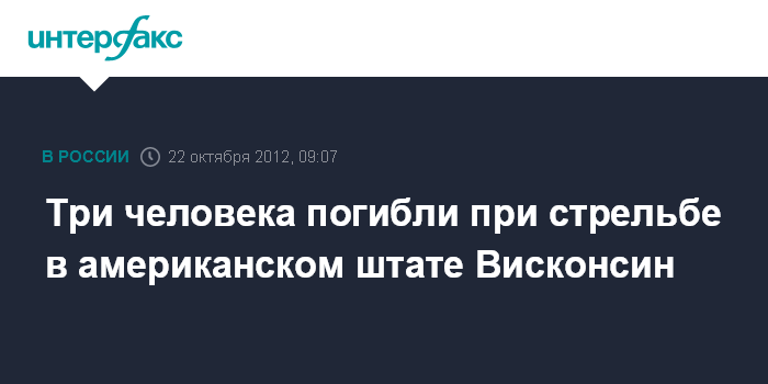 Лондон. 22 октября.INTERFAX.RU - Жертвами стрельбы в спа-центре города Брукфилд в американском штате Висконсин стали три человека, еще четверо получили ранения.