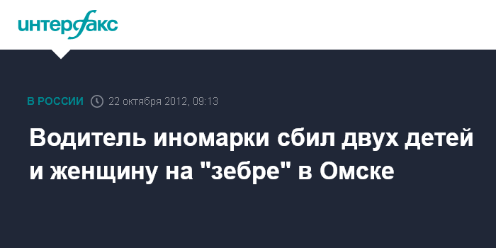 Омск. 22 октября. INTERFAX.RU - Водитель автомобиля Honda Inspire в понедельник утром в Омске совершил наезд на пешеходов, переходивших дорогу по нерегулируемому пешеходному переходу, есть жертва и пострадавшие.