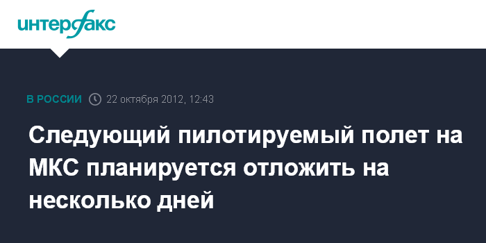 Москва. 22 октября. INTERFAX.RU - Перенесена дата старта к Международной космической станции (МКС) космического корабля "Союз ТМА-07М" с членами очередной экспедиции, сообщил "Интерфаксу" источник в ракетно-космической отрасли.