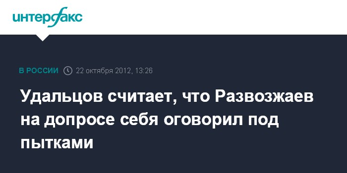 "Заявление Следственного комитета - это либо дезинформация, либо они вынудили Развозжаева себя оговорить, может быть, под пытками", - сказал Удальцов в понедельник "Интерфаксу".