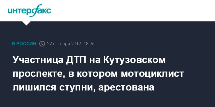 Участница ДТП на Кутузовском проспекте, в котором мотоциклист лишился ступни, арестована
