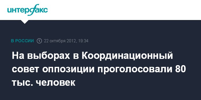 Москва. 22 октября. INTERFAX.RU - Голоса за кандидатов в Координационный совет оппозиции (КСО) за час до окончания выборов отдали 80 тысяч россиян.