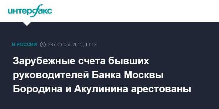 Зарубежные счета бывших руководителей Банка Москвы Бородина и Акулинина арестованы