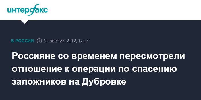 Москва. 23 октября. INTERFAX.RU - За последние девять лет мнение россиян об операции по освобождению заложников во время мюзикла "Норд-Ост" на Дубровке изменилось, показывают исследования социологов.