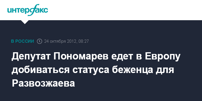 Москва. 24 октября. INTERFAX.RU - В ООН и Комиссару по правам человека Совета Европы будет подано заявление с просьбой присвоить Леониду Развозжаеву статус политического беженца, сообщил в своем блоге депутат Госдумы Илья Пономарев. "Послезавтра я лечу в Европу, где буду встречаться с представителями ООН и Совета Европы по данной проблеме. Я уже договорился с Борисом Немцовым, членом Координационного совета, о совместном заявлении в ООН и Комиссару по правам человека Совета Европы с просьбой присвоить Леониду Развозжаеву статус политического беженца, поскольку заявление было оформлено, а также взять на контроль нарушение статуса беженца и международного законодательства Россией и Украиной", - написал парламентарий в своем блоге в ночь на среду.