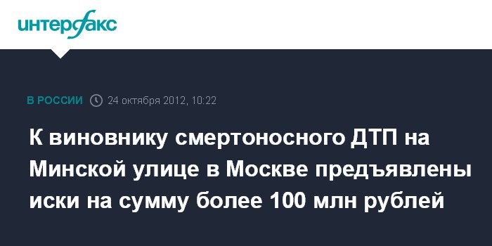 К виновнику смертоносного ДТП на Минской улице в Москве предъявлены иски на сумму более 100 млн рублей