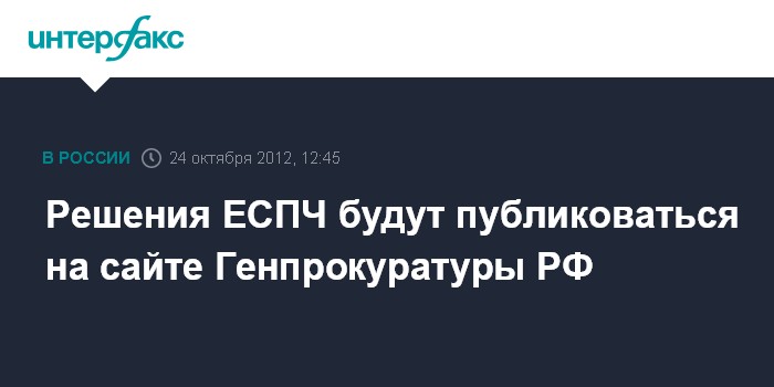 Москва. 24 октября. INTERFAX.RU - Генеральная прокуратура России начала размещать на своем официальном сайте решения Европейского Суда по правам человека (ЕСПЧ). "Это делается для того, чтобы граждане имели возможность знакомиться с практикой деятельности Страсбургского суда, поскольку правозащитная сфера является одной из ключевых функций российской прокуратуры", - заявила "Интерфаксу" в среду официальный представитель ведомства Марина Гриднева.