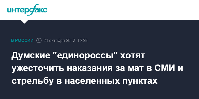 Думские "единороссы" хотят ужесточить наказания за мат в СМИ и стрельбу в населенных пунктах