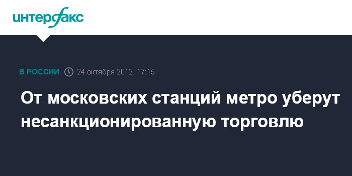 Москва. 24 октября. INTERFAX.RU - Правительство Москвы и ОАО "Российские железные дороги" (РЖД) до конца октября ликвидируют несанкционированную торговлю у станций столичного метрополитена - на территориях, переданных в управление Дирекции железнодорожных вокзалов (ДЖВ) РЖД для строительства транспортно-пересадочных узлов (ТПУ), сообщила ДЖВ.