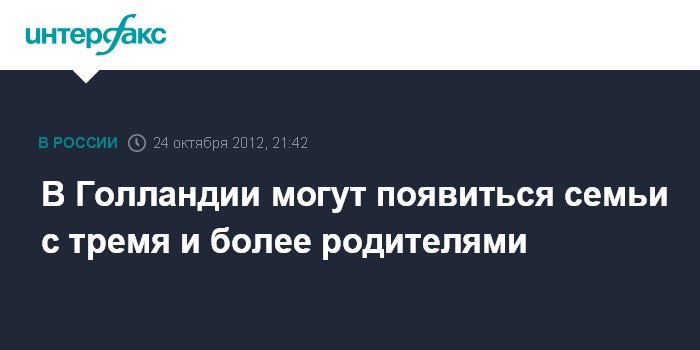 Амстердам. 24 октября. INTERFAX.RU - Голландские дети в скором времени, вероятно, смогут иметь трех и более родителей.