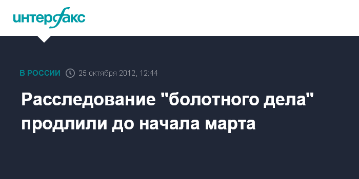 Москва. 25 октября. INTERFAX.RU - Следствие по уголовному делу о массовых беспорядках на Болотной площади 6 мая в Москве продлено до 6 марта, сообщил адвокат одного из фигурантов Василий Кушнир. "Следствие продлено до 6 марта", - написал В.Кушнир в своем "твиттере" в четверг.