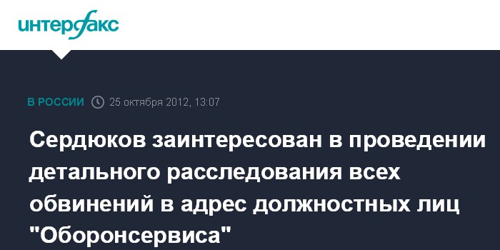 Сердюков заинтересован в проведении детального расследования всех обвинений в адрес должностных лиц "Оборонсервиса"